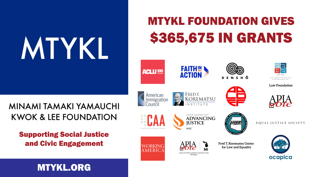 “Our grants to social justice and civic engagement organizations represents a renewed investment in aggressive efforts to engage people of color, especially Asian Americans, and oppressed communities in protecting our democracy,” said Donald Tamaki, MTYKL Foundation board member. “Our foundation hopes that other leaders and funders in the legal community will explore similar ways to support and defend our country’s disenfranchised.”